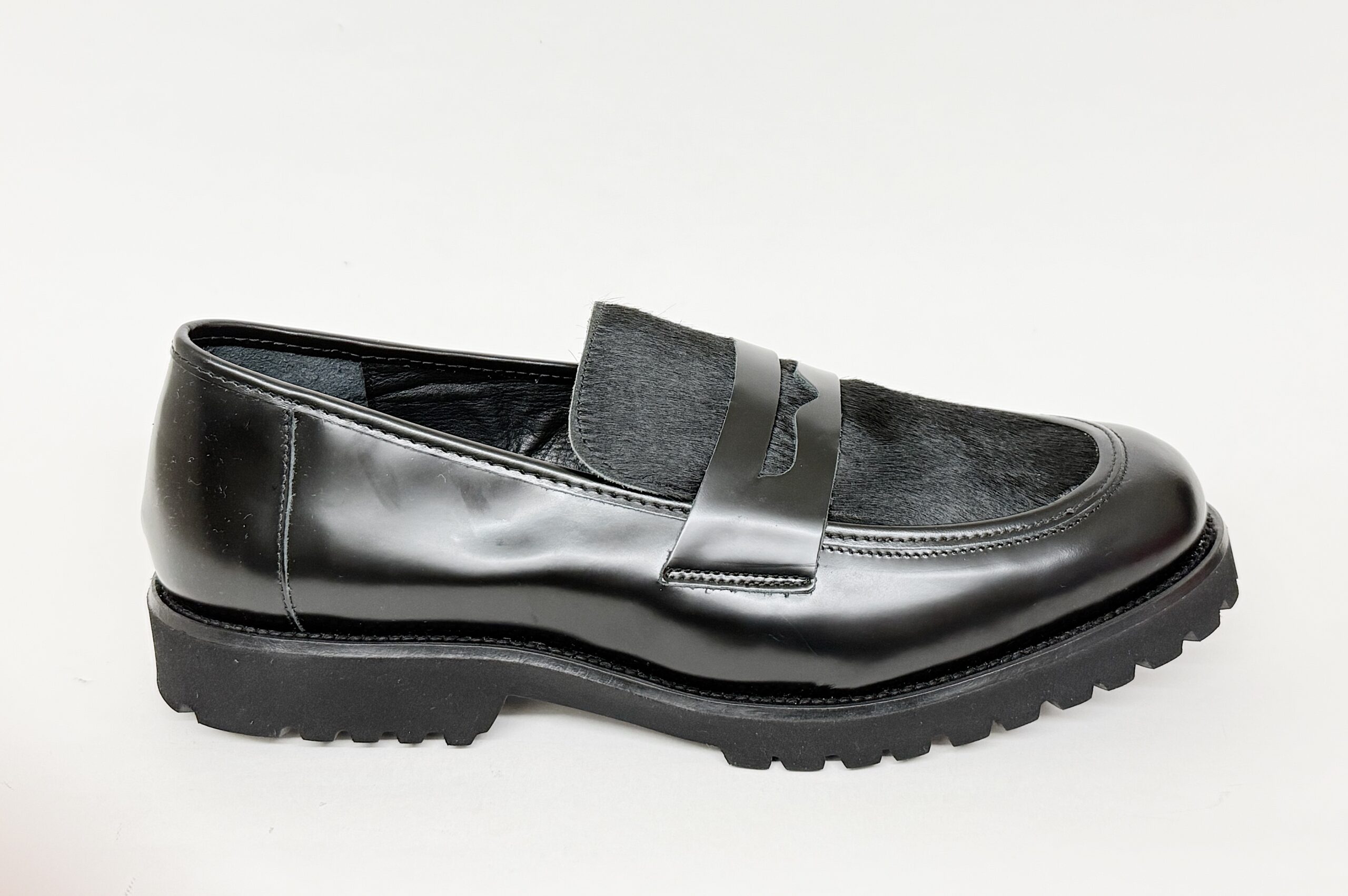 Mocassino da donna misure grandi in pelle abrasivata e cavallino.