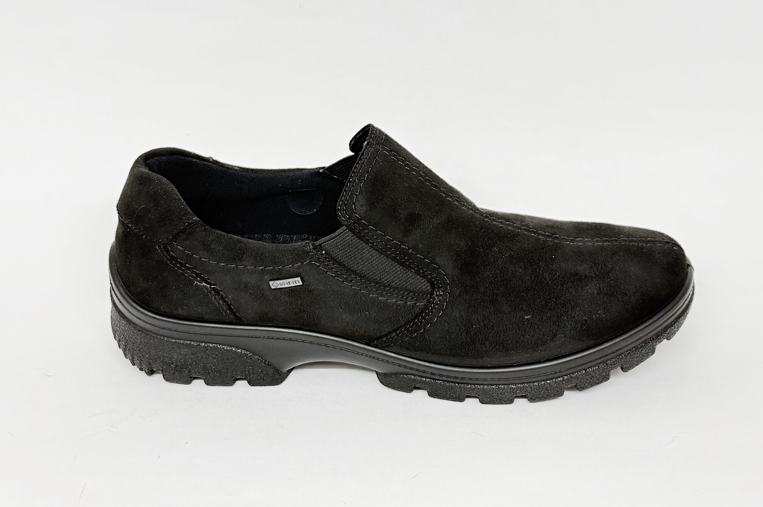 Pantofola da donna misure grandi con elastici in camoscio nero.