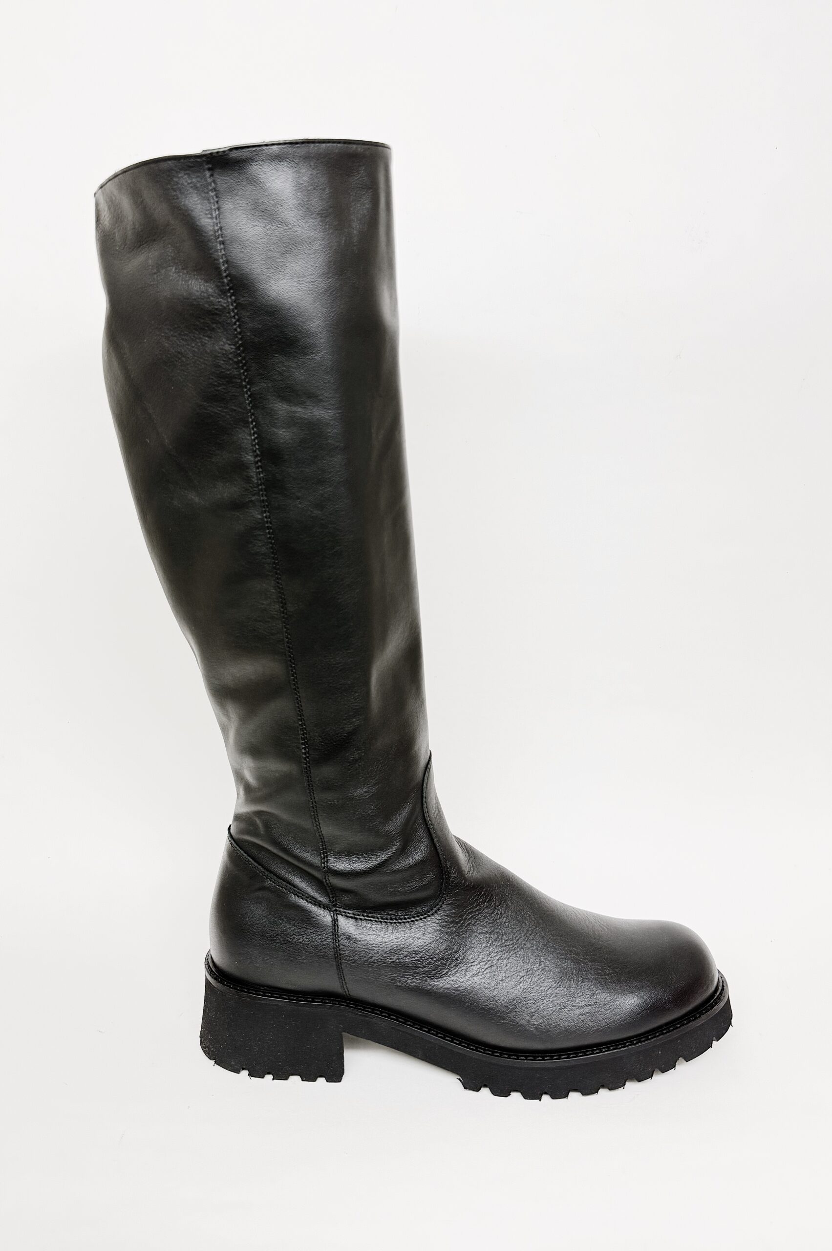 Stivaletto da donna misure grandi con elastici in pelle nera, fondo carrarmato.